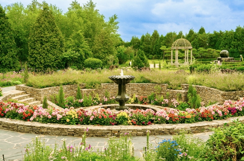 고대 유러피언 중앙분수를 기점으로 식물들을 사용해 화려하고 아름다운 문양을 그려낸 프랑스식 정원